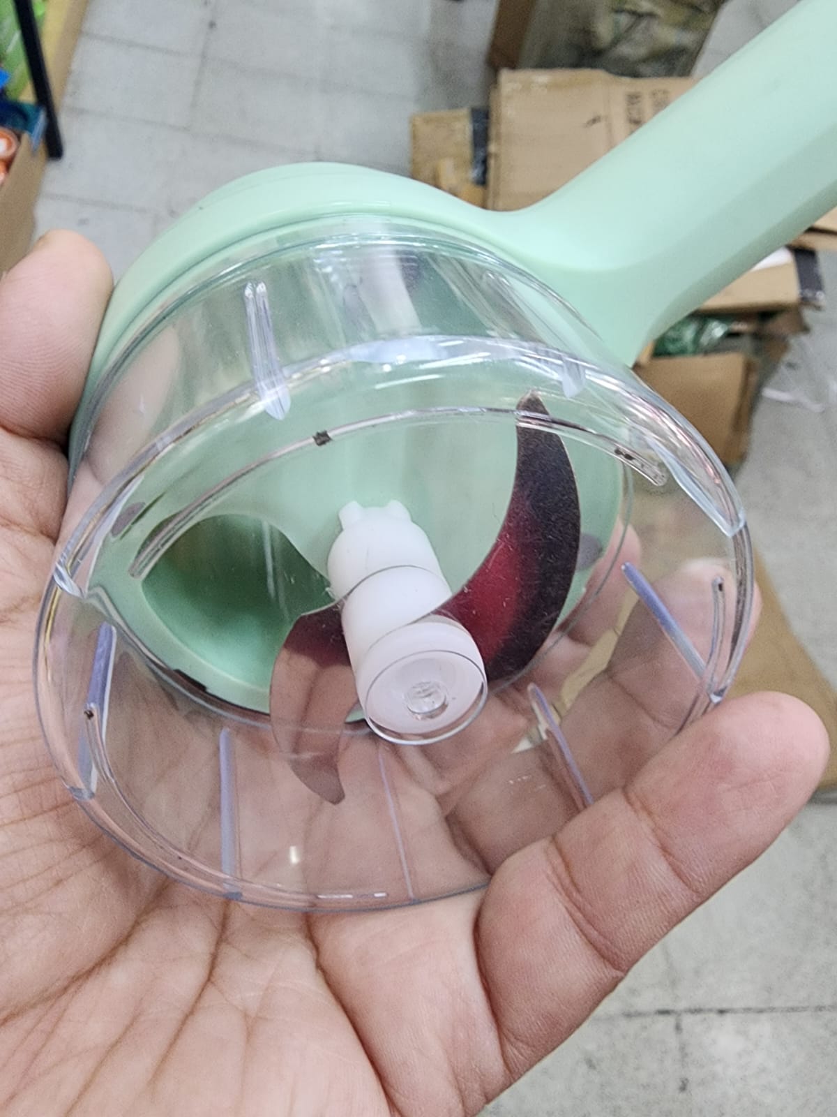 Esta cortadora de verduras eléctrica multifuncional no solo corta y rebana al instante, también tritura ajo, pica carnes blandas, y hasta incluye un cepillo de limpieza automático para que todo el proceso sea fácil y rápido.